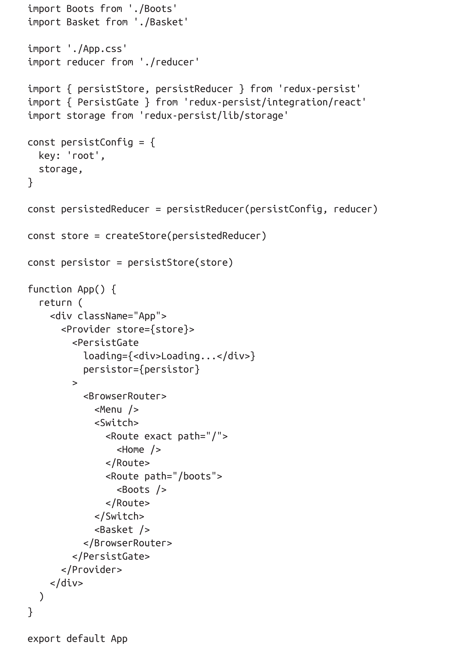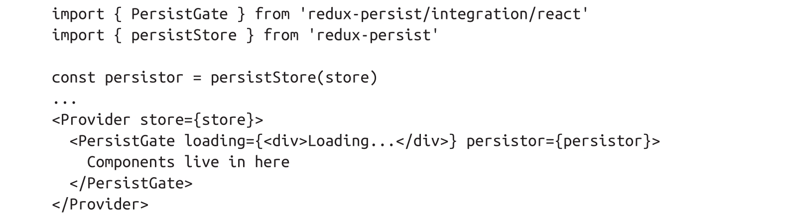 Redux Persist代码需要插在Redux store和访问Redux store的那些代码之间。我们通过一个名为PersistGate的组件来实现: