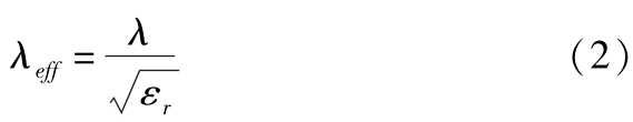 式中, c 为毫米波传播速度,其值为3×10 8 m/s; f 为毫米波雷达工作频率。77G毫米波其频率为77Ghz,计算获得毫米波在真空中波长后,可通过式(2)计算在材料中的波长