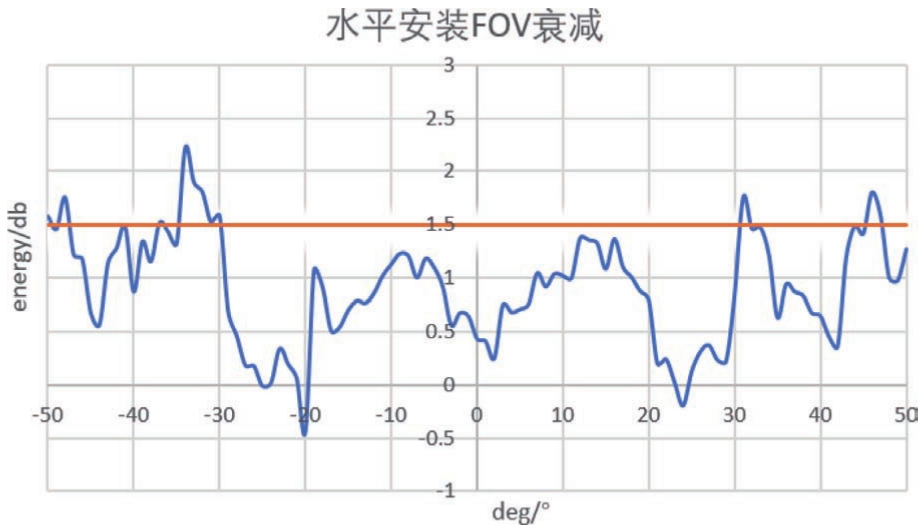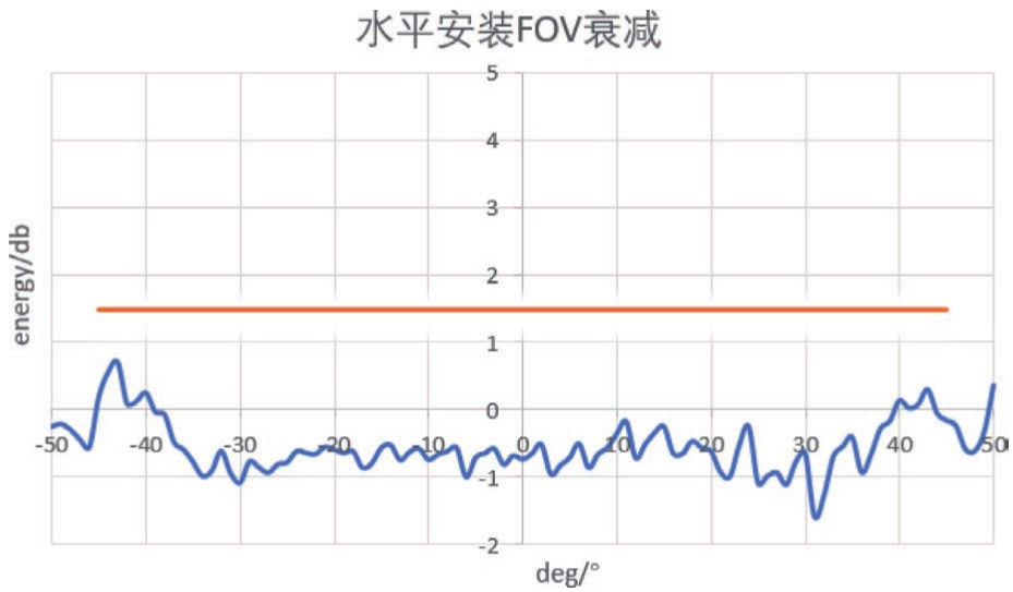 ·加雷达覆盖件后的单向衰减方向图在水平(±45°)和垂直(±15°)范围内衰减小于1.5db即为满足功能设计要求的雷达覆盖件。