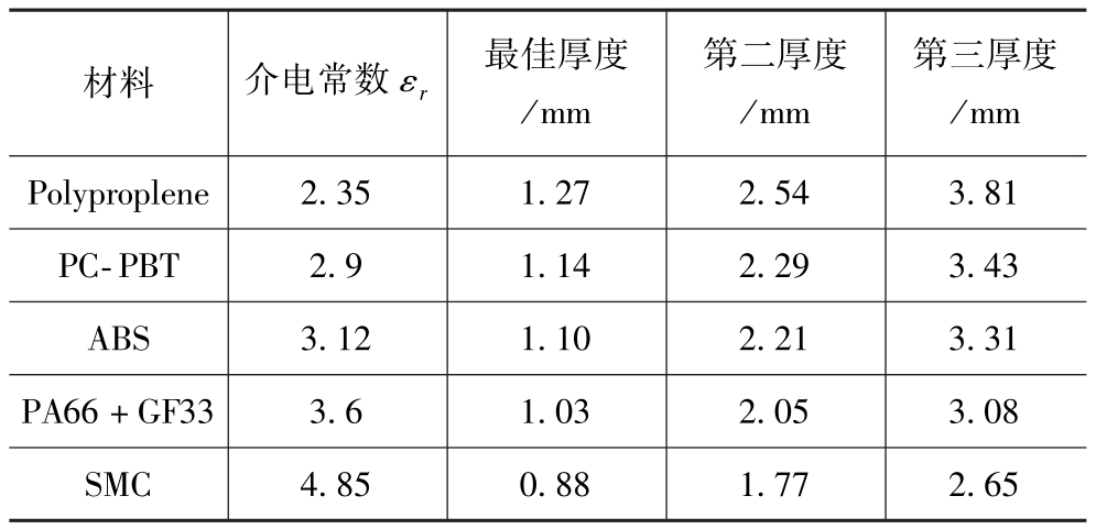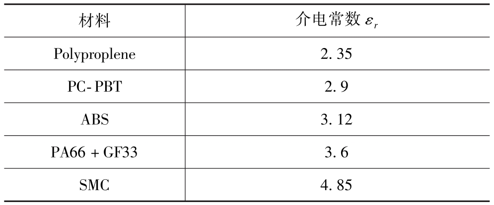 ·不同常见毫米波材料的介电常数可以通过材料供应商获取,无法获取或变更材料添加物的可以根据参考文献[2]所描述方法进行测试获取。表1为几种常见雷达罩材料的介电常数。