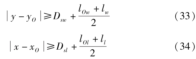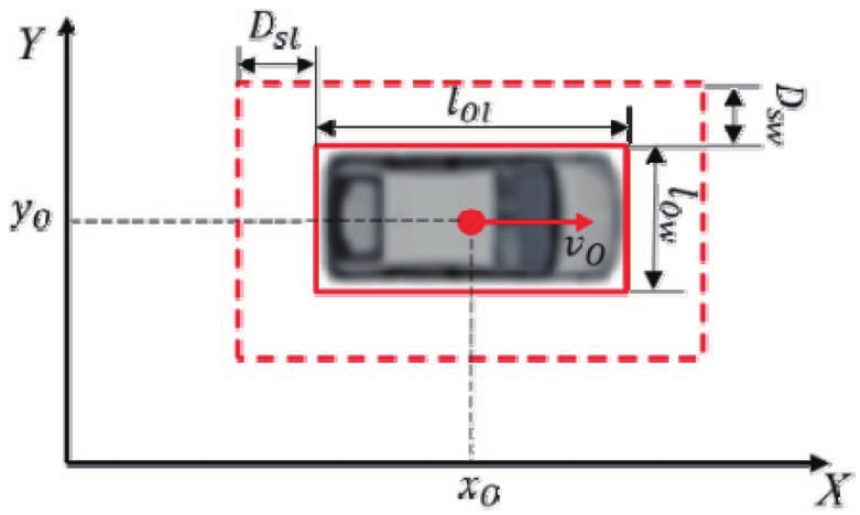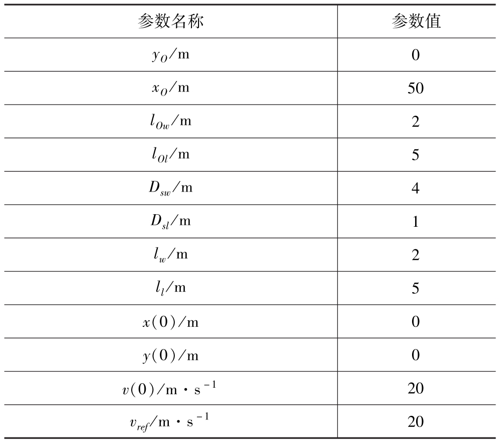 式中, y O 为障碍物横向位置; x O 为障碍物纵向位置; v O 为障碍物的运动速度; l Ow 为障碍物的横向宽度; l Ol 为障碍物的纵向长度; D sw 为横向安全距离; D sl 为纵向安全距离。