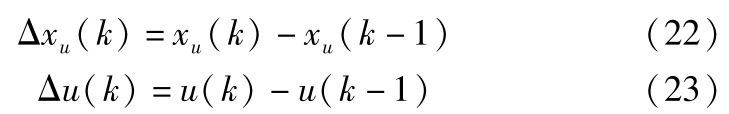 首先基于状态空间模型预测系统的未来动态,首先将式(10)和式(11)改写为增量模型如下: