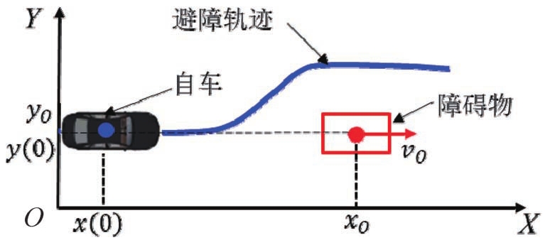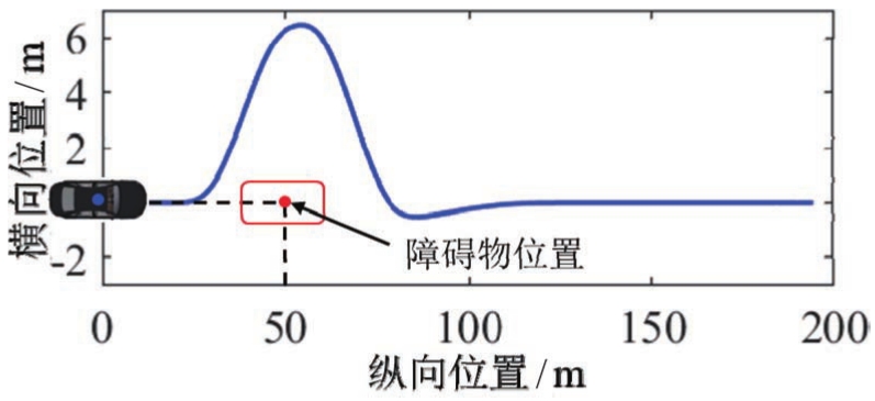 为验证本文提出的基于自适应MPC的轨迹规划方法的性能,在MATLAB中搭建了两种典型场景,进行仿真试验。试验场景分别为避让静态障碍物和避让动态障碍物,如图4所示,主要包括自车和障碍物,自车根据自身以及障碍物的运动状态,应用本文提出的方法进行轨迹规划,最终得出避障轨迹。该试验中基本参数见表1。