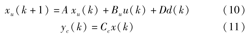 式中, x u ( k )∈R 4 是状态变量; u ( k )∈R 2 是控制输入变量; d ( k )为外部干扰变量; y c ( k )∈R 2 是被控输出变量。
