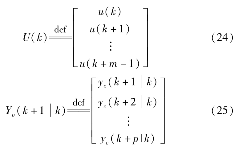 设预测时域为 p ,控制时域为 m , m 步输入向量和预测输出向量如下: