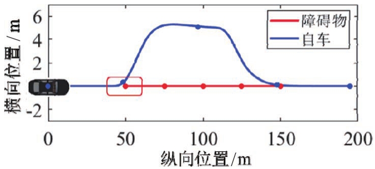 经仿真试验验证,主车能够避开障碍物,所规划的轨迹如图5所示。