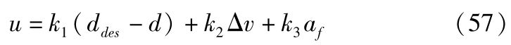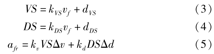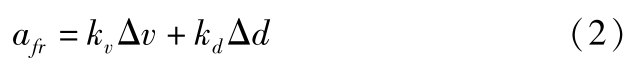 式中,Δ v 为相对速度;Δ d 为相对距离误差,Δ d = d des -d ; a fr 为自车期望加速度; k v , k d 为控制增益。