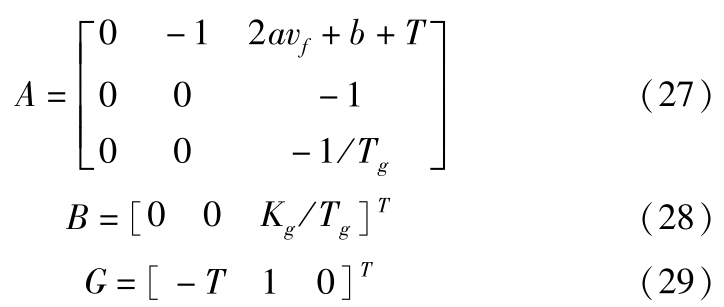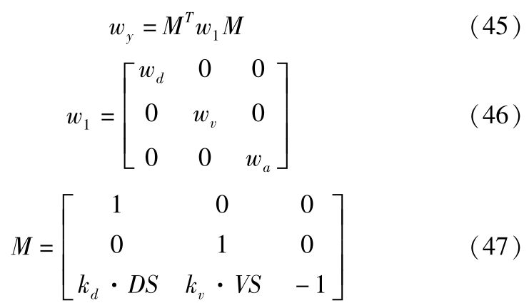 取系统输出为 y =[Δ d ,Δ v , a f ] T ,则系统输出方程为