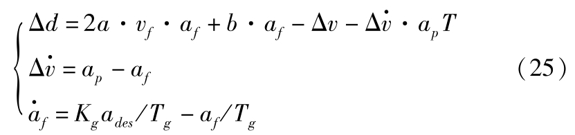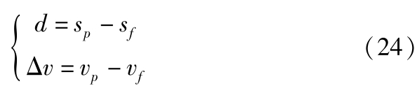 式中, s p 为前车位置; s f 为自车位置; v p 为前车速度。综合式(1)、式(23)和式(24)可得:
