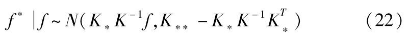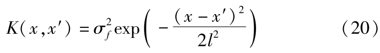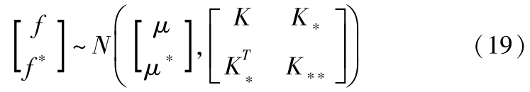 式中, K 为 f 的协方差矩阵; K * 为 f 与 f * 的协方差矩阵; K ** 为 f * 的协方差矩阵。 K 由径向基核函数构成,其定义如下: