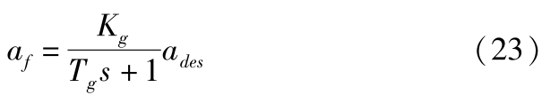 式中, a des 为汽车的期望加速度; K g 为系统增益; T g 为系统延迟。