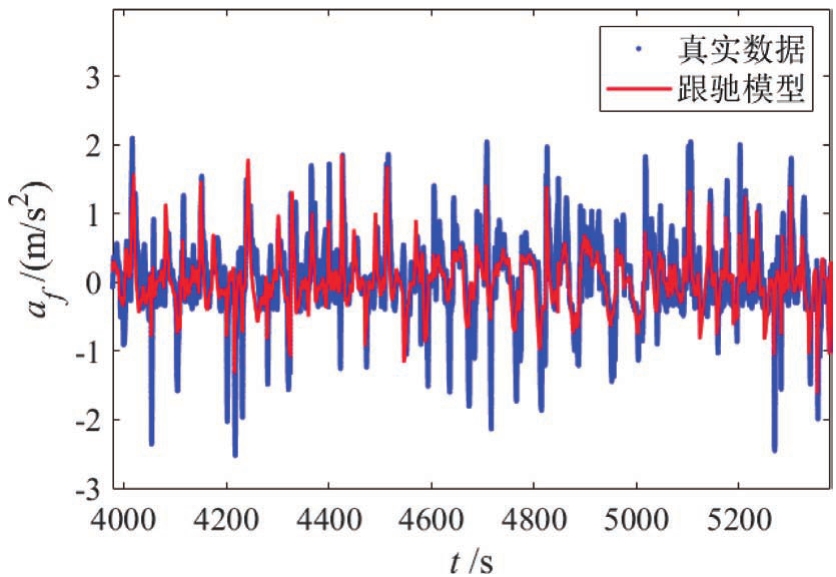 利用过去10s内的信息预测未来2s内的前车加速度,其结果如图6所示。可以看出预测结果和真实值的变化基本一致。