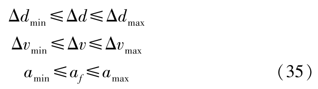 式中,Δ d min ,Δ v min , a min ,Δ d max ,Δ v max , a max 分别为系统输出的上下限。