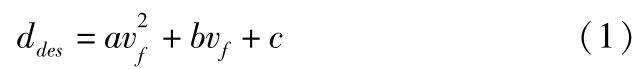 跟车过程中,驾驶人的期望车距采用期望距离模型来描述。相关研究表明,驾驶人的期望车距与自车车速近似于二次函数形式 [17] ,并且该模型结构形式简单,被广泛应用于控制领域。因此,建立二次型期望车距模型如下: