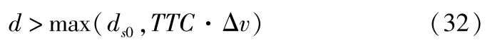 式中, TTC 为碰撞时间; d 为实际车距; d s0 为极限安全车距。