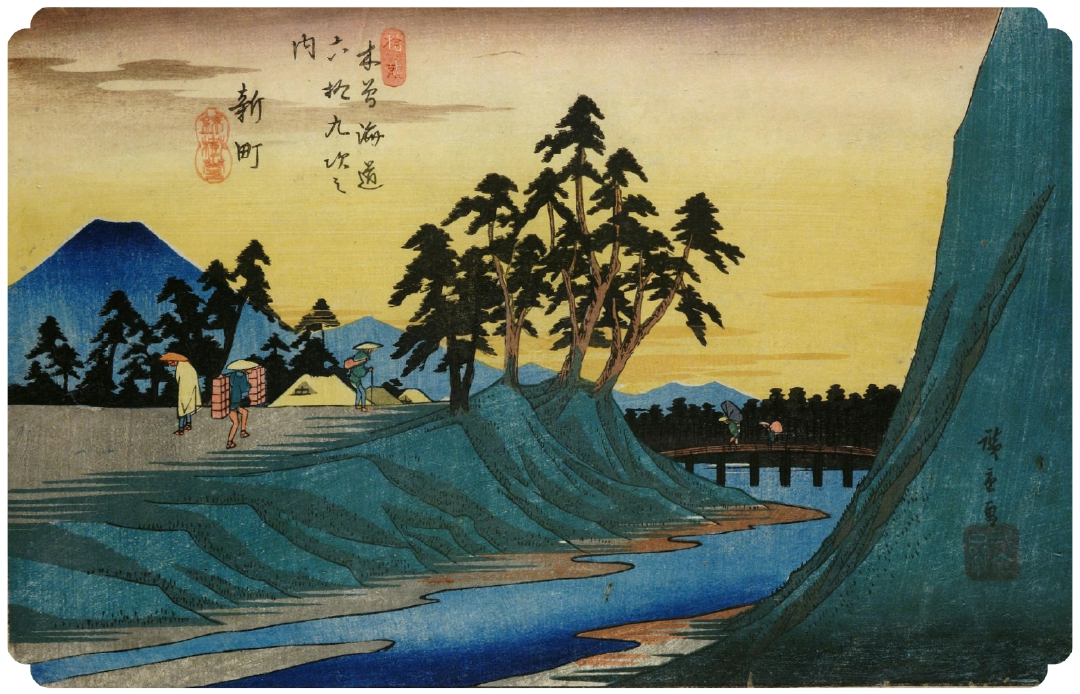 歌川广重 《木曾海道六十九次之内 新町》(伊势利版)