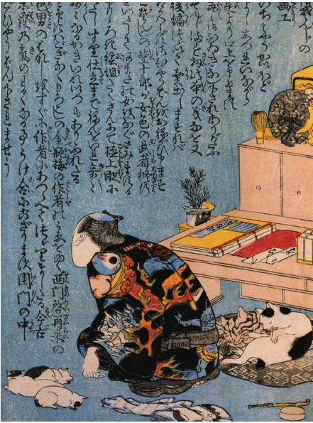 除了这些场面宏大、细腻浓烈的武者绘之外,国芳还开辟了讽刺画和“戏画”的先河。他通过戏谑轻松的画面以拟人化的手法抨击幕府恶政,表达不满与讽刺。歌川国芳以手中的画笔将天马行空的奇思妙想具象化为一幅幅传世杰作,以自己独特的形式造就了属于江户时代的传奇。