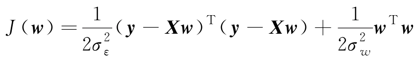 如第1章所引出的结论,所谓正则化是在用误差平方和表示的目标函数中增加一项约束参数向量自身的量,一种常用的约束量选择为参数向量的范数平方,即