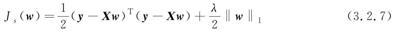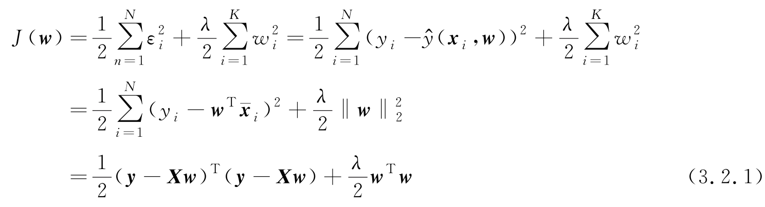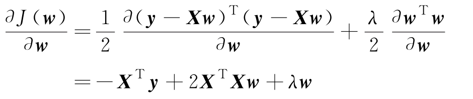 这里 λ 是一个可选择的参数,用于控制误差项与参数向量范数约束项的作用。为求使式(3.2.1)最小的 w 值,计算