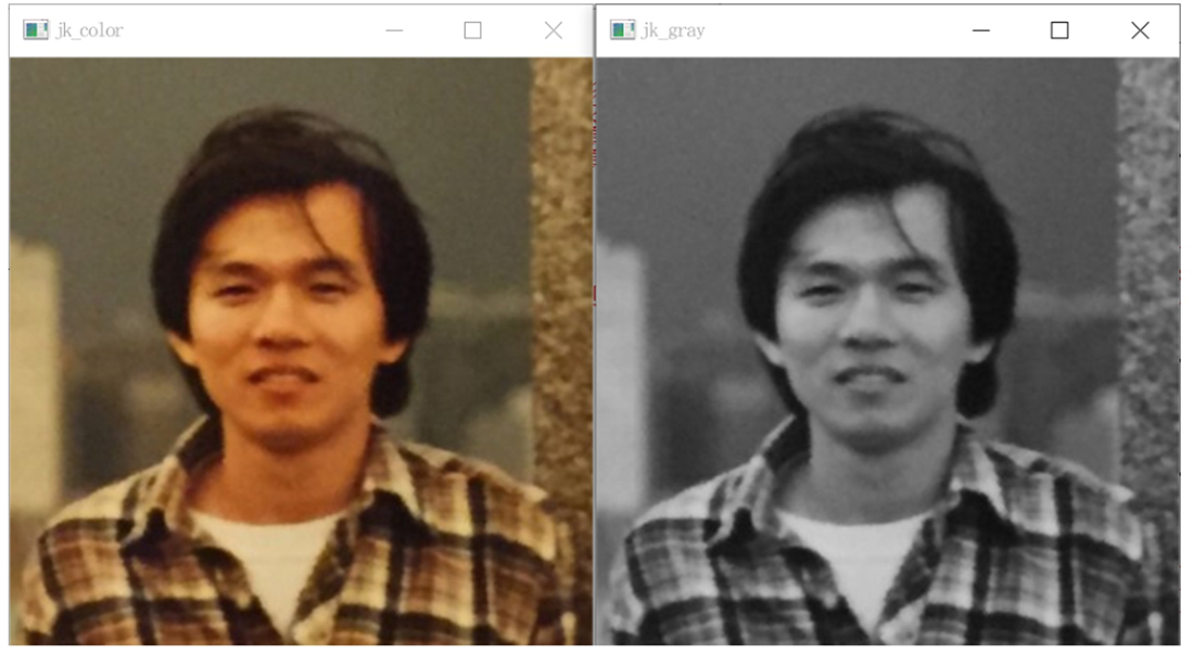分别以彩色和灰度读取图像,笔者使用jk.jpg在屏幕显示,同时以下列方式存储: