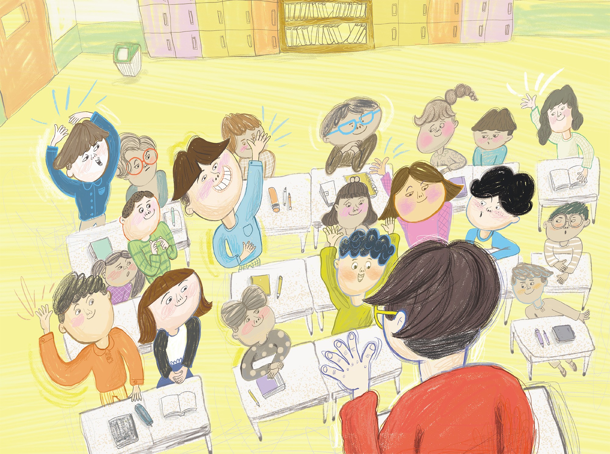 邮递员的职责,是向同学们发送家庭信息,或是在教室外面跑腿。出乎意料的是,这个工作相当受欢迎,老师话音刚落,就有10个孩子立马站了起来,其中竟然还有要当警察的元熙。