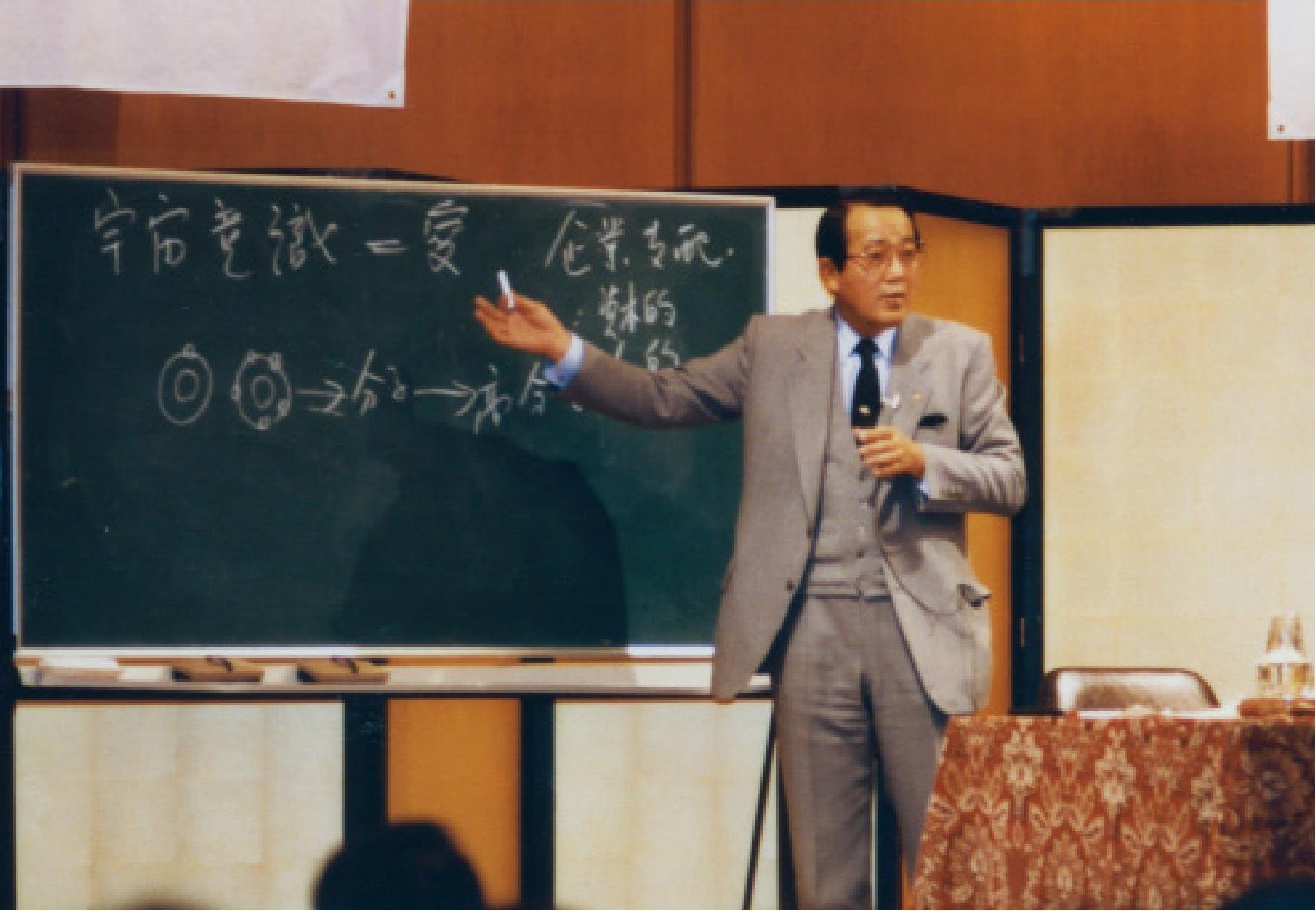 9.1987年稻盛在盛和塾的前身“盛友塾”交流会上发表演讲。