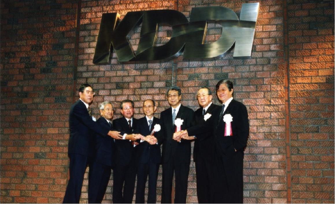 8.1984年,稻盛成立第二电电企划株式会社,担任会长。(前排右一为盛田昭夫,右三为稻盛和夫)