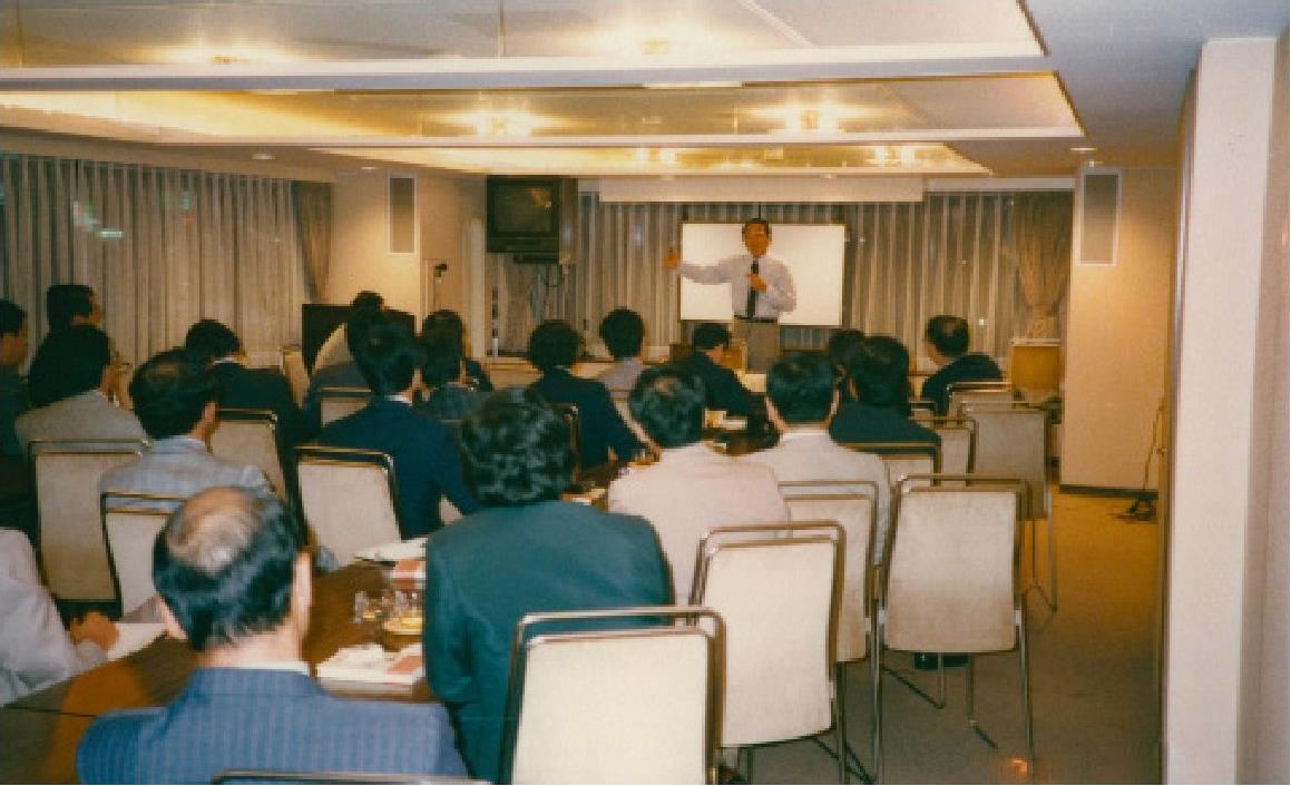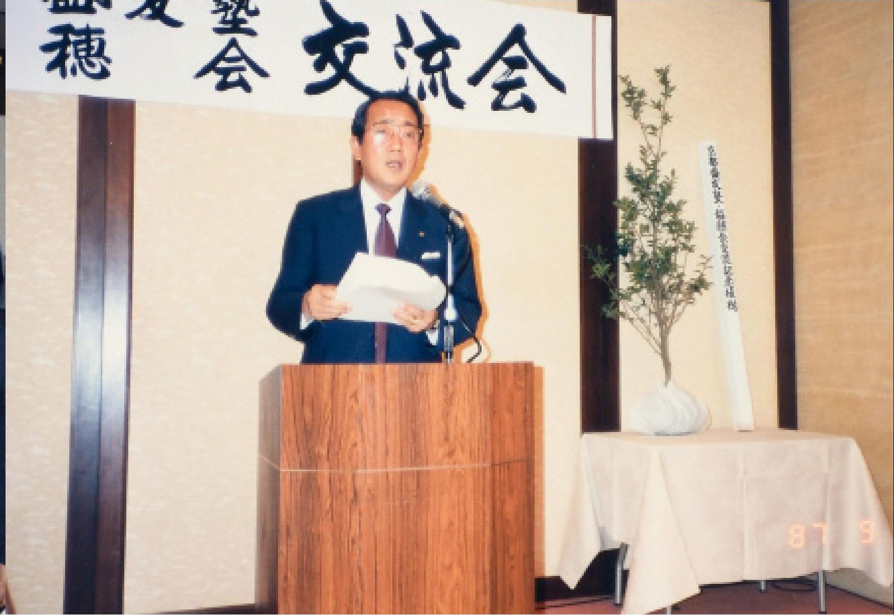 9.1987年稻盛在盛和塾的前身“盛友塾”交流会上发表演讲。