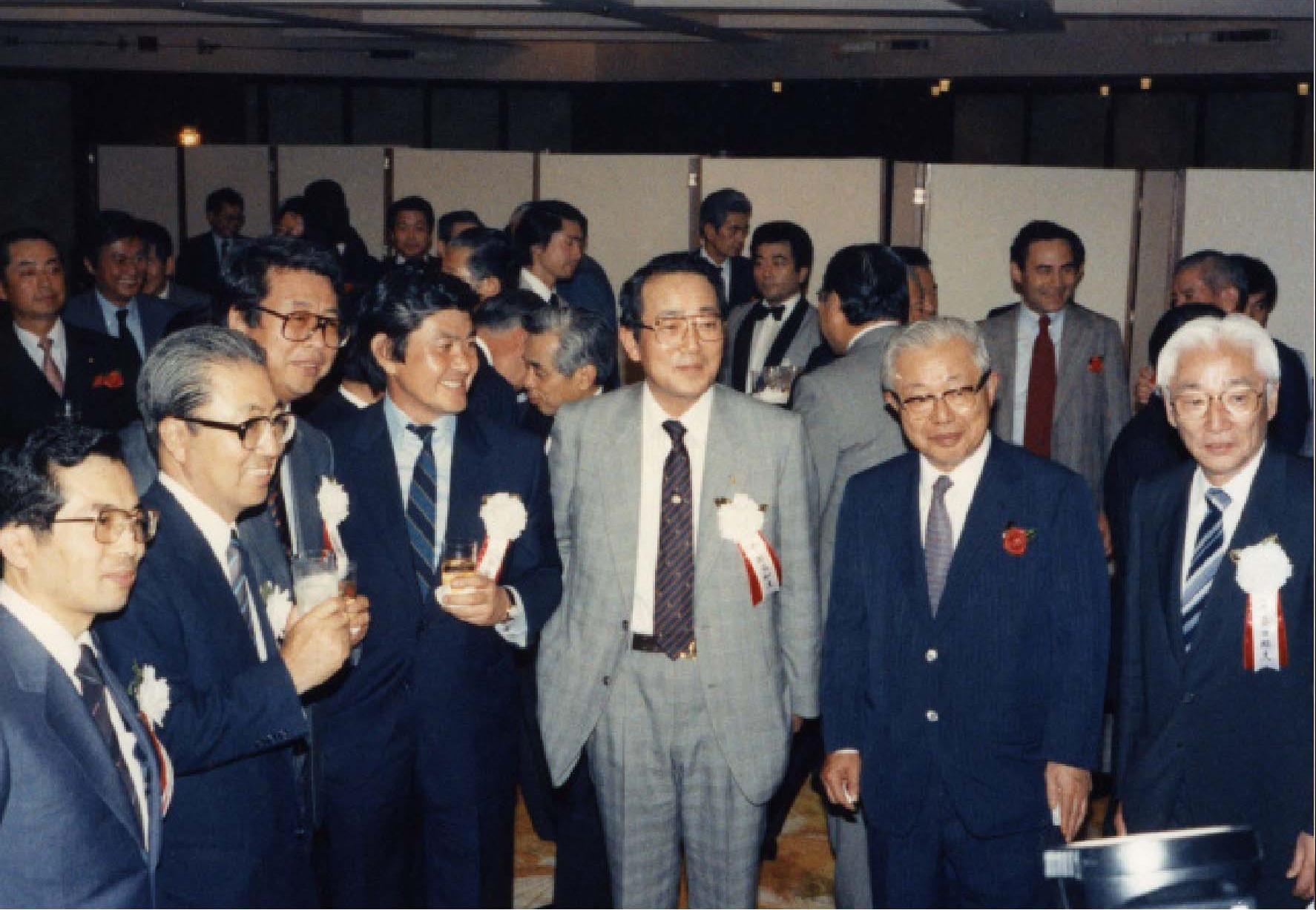 8.1984年,稻盛成立第二电电企划株式会社,担任会长。(前排右一为盛田昭夫,右三为稻盛和夫)