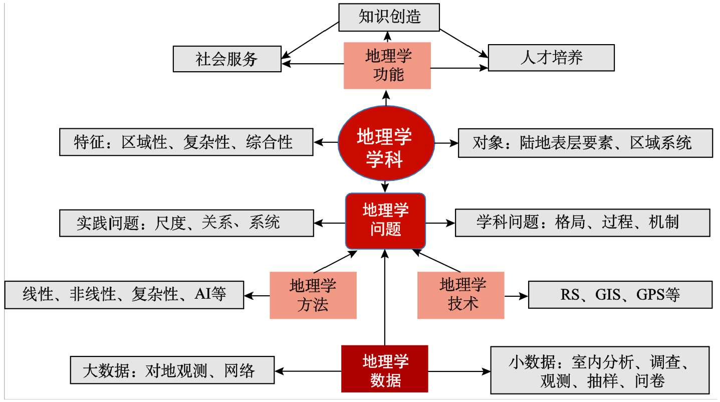 地理学作为学科,具有其独立的学科问题。总体而言,地理学学科问题分为地理现象的空间格局问题、时空变化过程问题和驱动机制问题。针对不同的社会实践需求,地理学需要解决不同复杂程度的系统问题、不同尺度的区域问题和不同陆地表层要素的相互作用问题。由此可见,地理学既是一门基础学科,同时也是解决大量社会实践问题的应用学科。