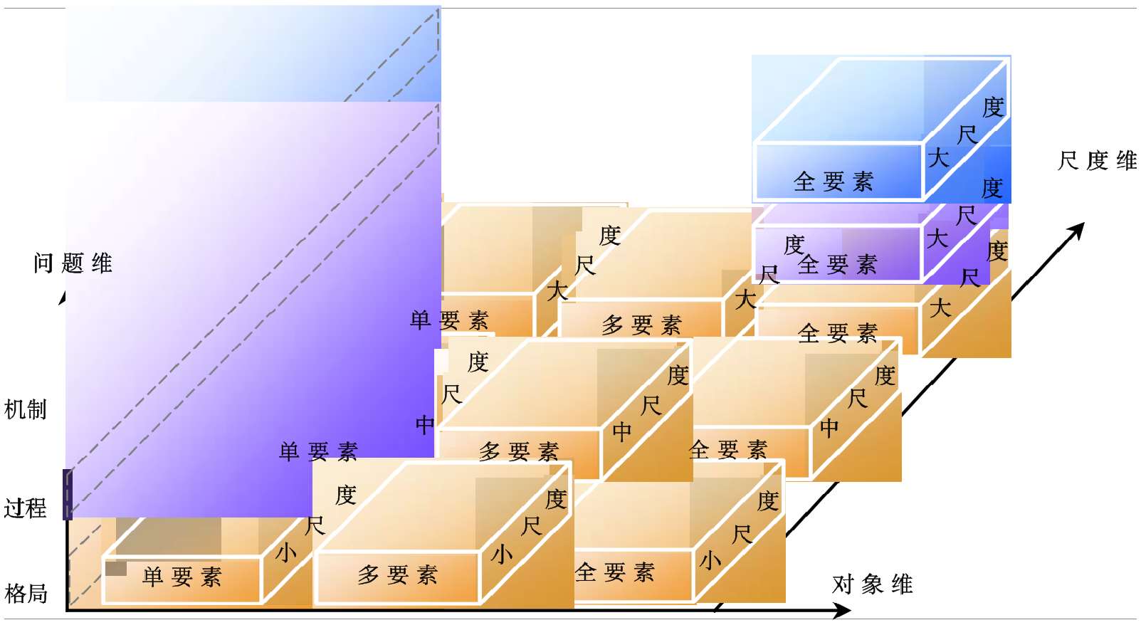 地理对象、地理问题和地理尺度从三个维度构成了地理学科问题体系(图1-3)。回顾以往的研究发现,陆地表层单要素研究、地理格局研究取得了突出的成就,针对这些研究建立了系统的技术和方法体系。自20世纪80年代以来,针对陆地表层多要素研究和地理过程的研究取得了显著的研究成绩。自2010年以来,地理学尝试开展陆地表层系统的研究,引入系统科学的思维,逐渐形成陆地表层多要素研究的观测体系和研究思路,并开始进行良好的科学实践。