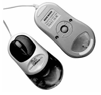 根据结构,鼠标可分为机械鼠标和光电鼠标两大类,如图2-4所示。机械鼠标通过一个橡胶滚动球把位置的移动转换为0/1信号。光电鼠标通过底部的一个光电检测器来确定位置。