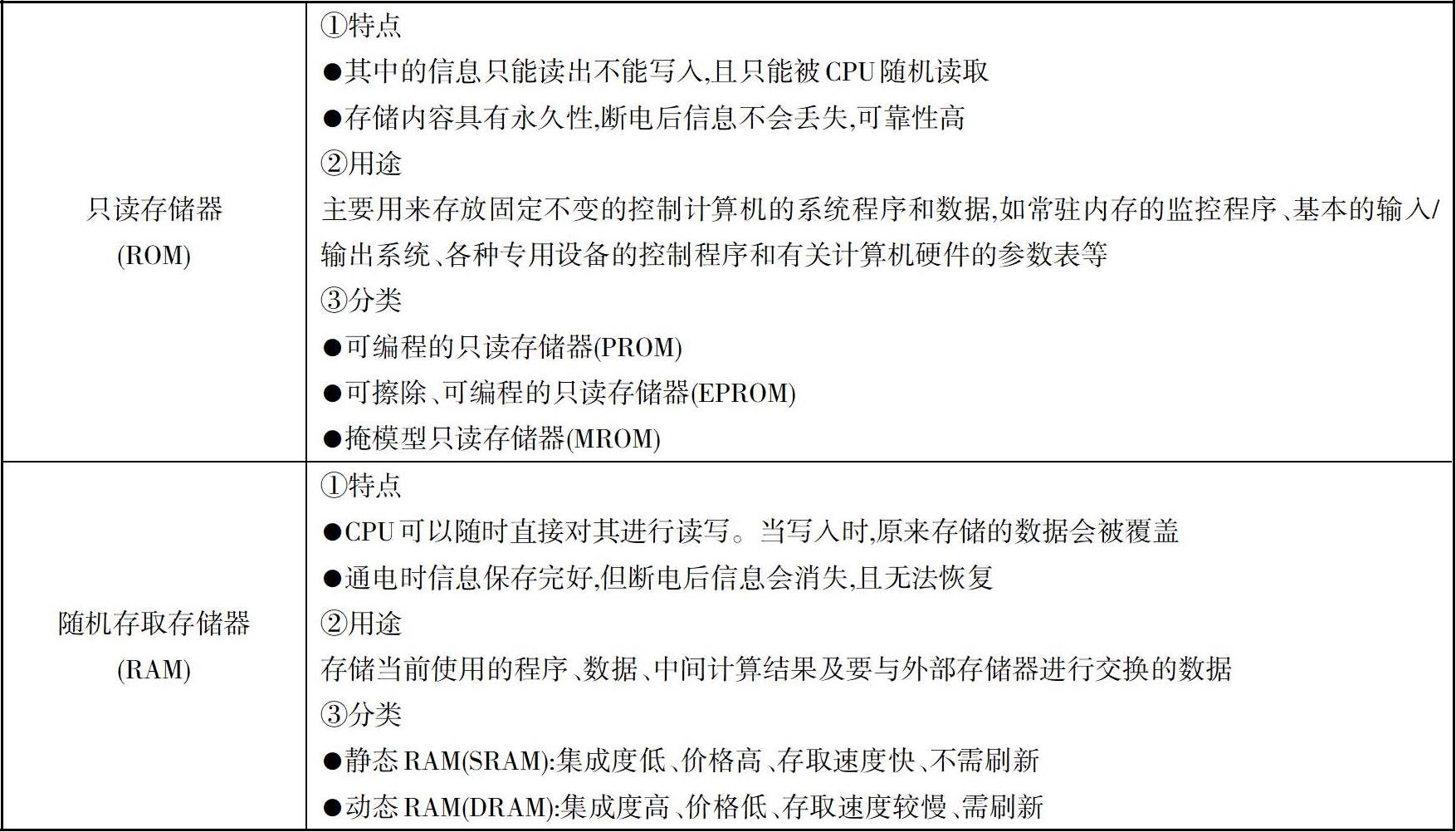存储数据是指向存储器“写入”数据,取出数据是指从存储器里“读出”数据。读/写操作统称为对存储器的访问操作。