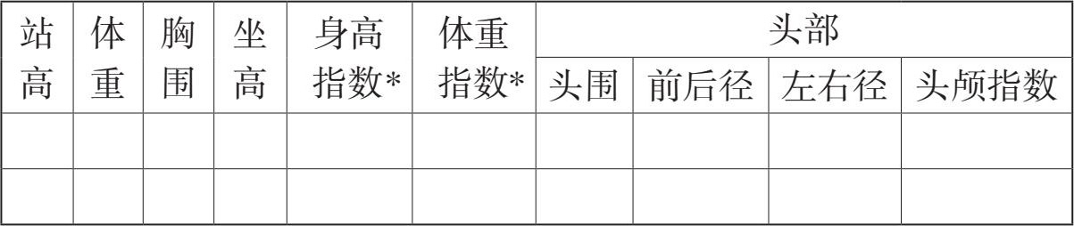 医生所做的检查必然是复杂的,为了方便和规范这些测量的进行,我设计并印制了如下的记录表。