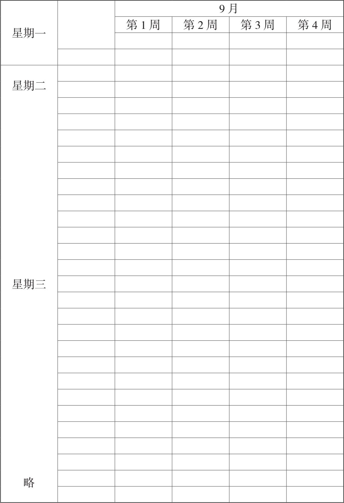 我们用来记录孩子体重的记录表如下。登记册的每一页对应一个月。