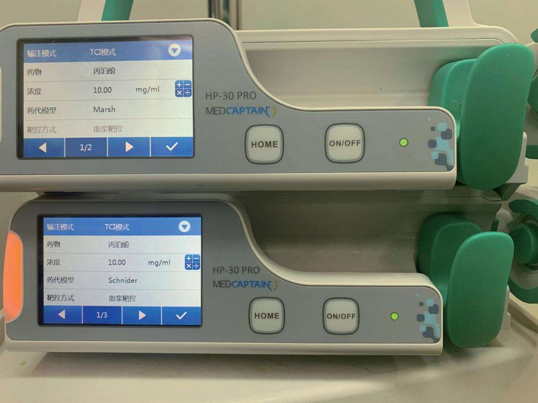 1. 人工给药(手动推注)人工给药是最常见的给药方式,简单、便捷,根据患者自身情况(年龄、体重等数据)计算给药量,但可能因一次性注入大量药物造成一过性的高血药浓度导致呼吸抑制、低血压等不良反应,并且人工给药与医师自身的临床经验有很大关系。同时,若手术时间过长或镇静效果不佳,可能需要反复多次推注药物而致不良反应增加及苏醒延迟。