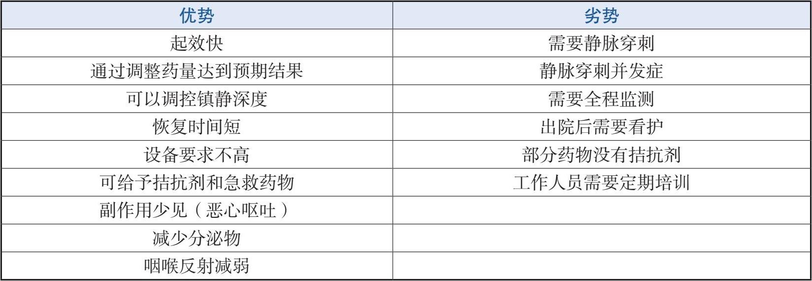 静脉镇静的优势与劣势见表2-4-1。