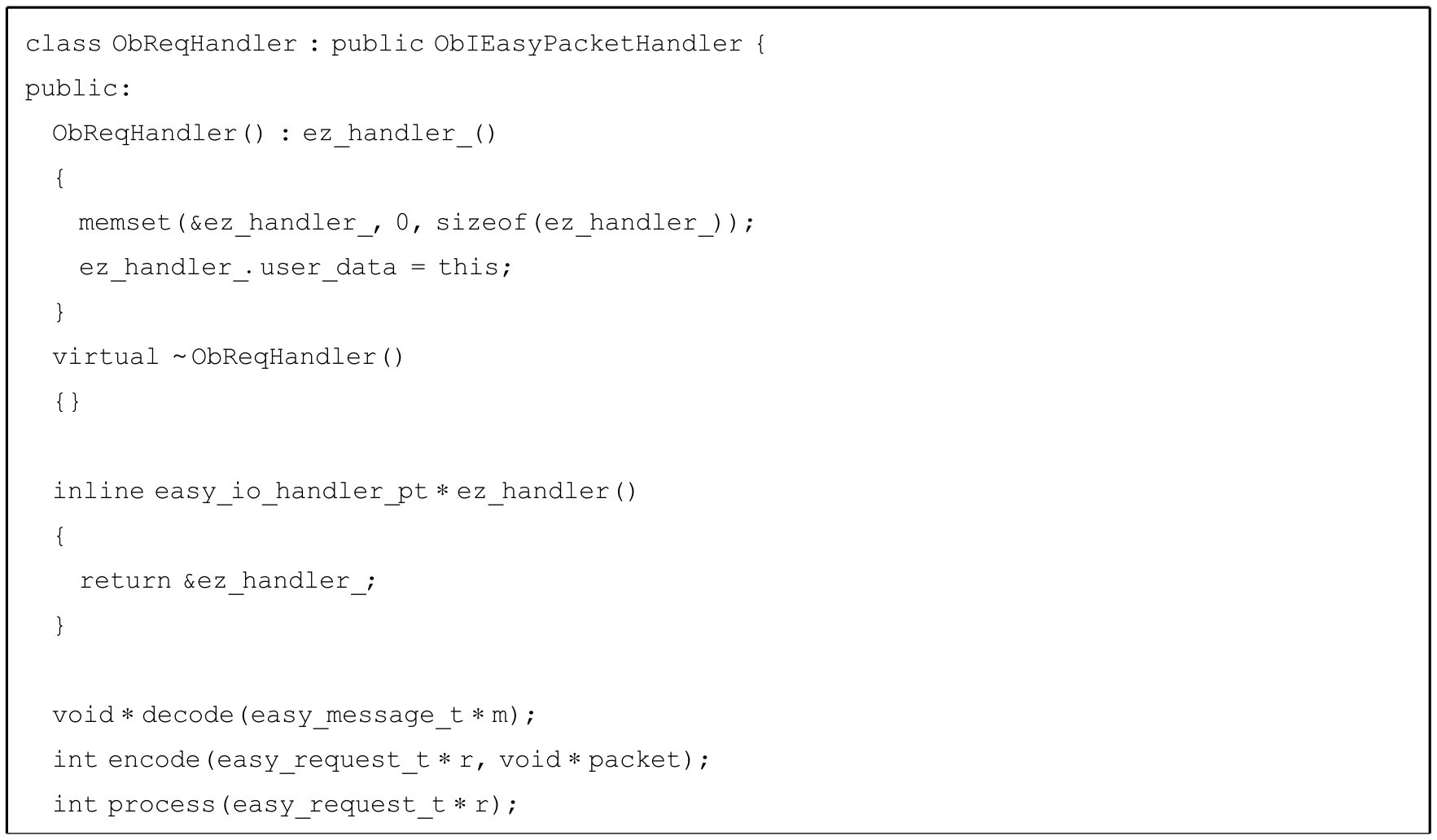 OceanBase将这一整套回调函数称为Handler(处理者),在比较高的抽象层次上,Handler被封装为类ObReqHandler,见代码3.1。