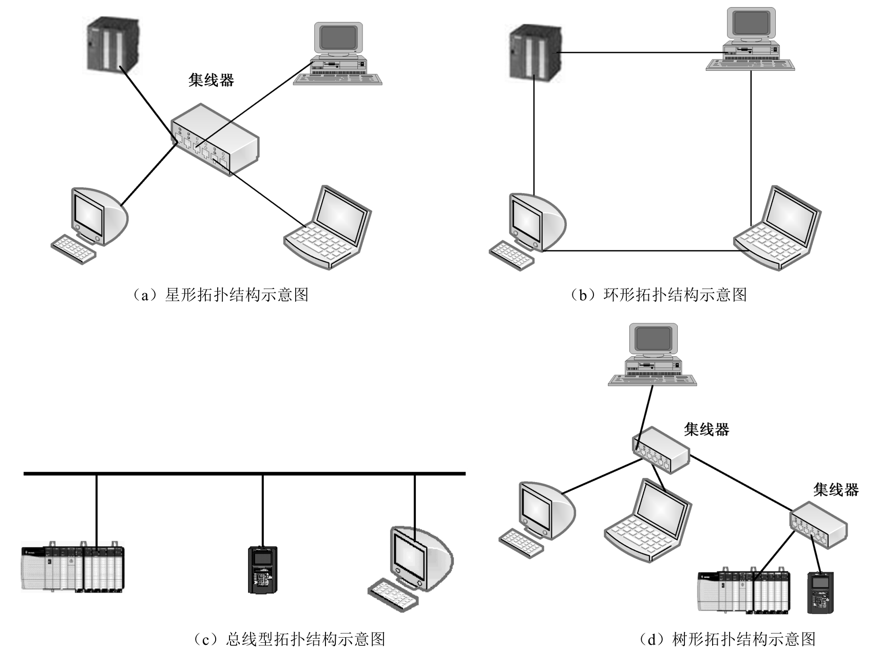 从拓扑学的观点看计算机系统,抽象出网络系统的具体结构,即成为计算机网络拓扑结构,网络拓扑结构就是网络中节点的互连形式。基本的网络拓扑结构有4种,分别是星形、环形、总线型和树形。当然,在实际应用中,可以根据需要,把基本的网络拓扑结构组合成更为复杂的网络拓扑结构。在工业控制网络中,网络节点设备除了计算机,还包括大量的现场控制站、智能测控单元(如现场总线仪表和执行器)等。