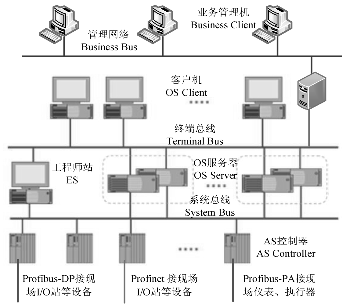 终端总线用于PC之间的通信,例如,客户机和服务器之间的通信,以及工程师站和OS服务器之间的通信。