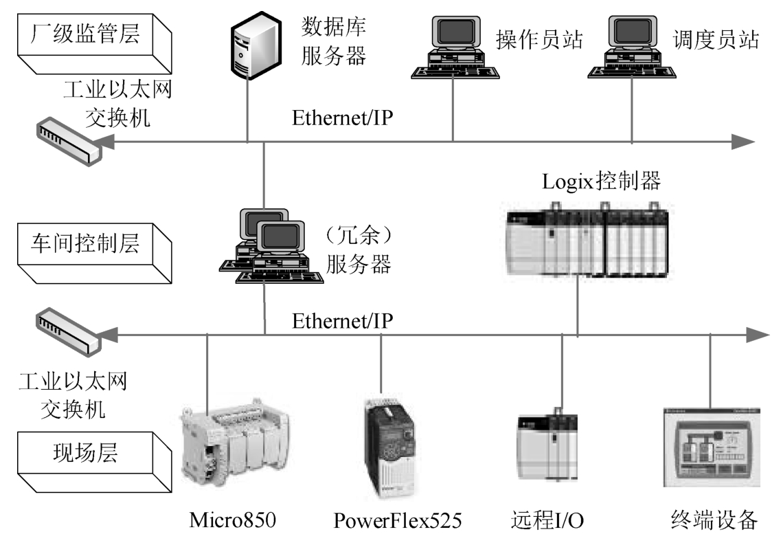 图2.20 罗克韦尔基于Ethernet/IP工业以太网的工业控制系统结构示意图