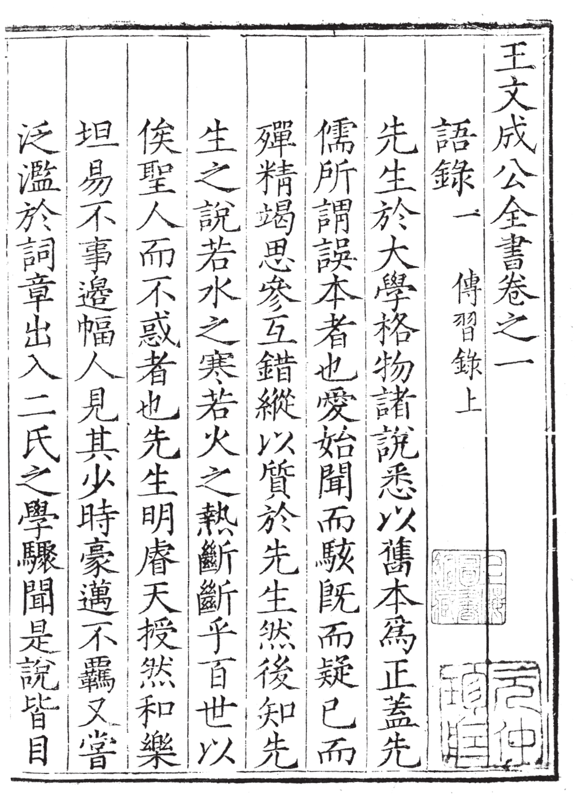 明隆庆六年(1572)刻本《王文成公全书·传习录上卷》