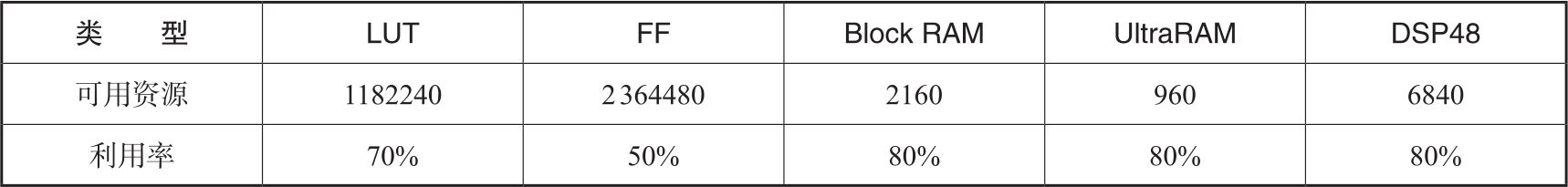 以VU9P为例,其可用资源及某设计中的资源利用率如表1—6所示。Vivado版本为2018.3,服务器操作系统为Linux 64位,完成一次编译(从综合到生成.bit文件)至少需要十几个小时。当设计的时钟频率为400MHz时,完成一次编译就需要二十多个小时甚至更长,而有时还无法实现时序收敛,导致反复迭代,消耗更多时间。