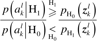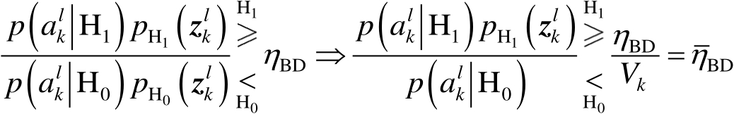 根据贝叶斯最小平均错误概率准则 [113] ,似然比检验式可写为