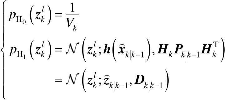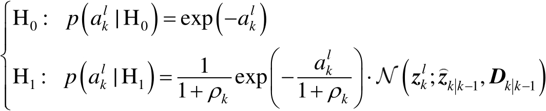 直观上理解式(2-23),相当于直接将反馈的目标位置分布乘到了H 1 条件下回波幅度的概率密度函数上,化简得判决表达式为