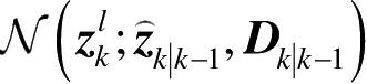 式中, N ( b ; a , B )表示以 a 为均值, B 为协方差矩阵的高斯分布在 b 点处的概率值。