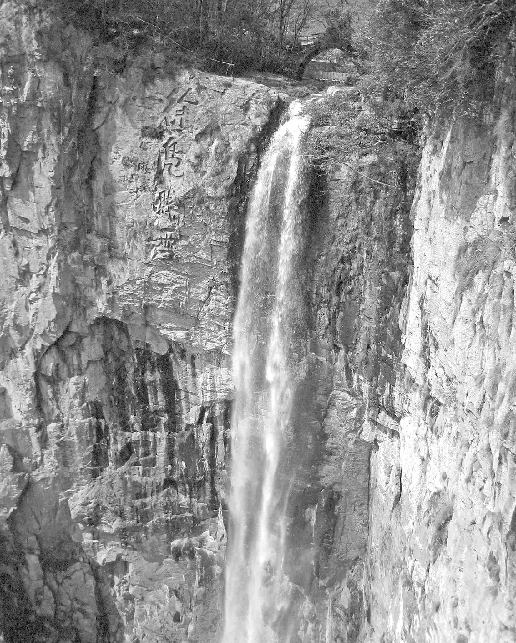 仙人野凫到底远在天外,生民既然离不了大地,尘世的苦乐哪能躲得开?躲,去处常在陵谷间,又因地太僻、境太清而别添一缕愁。柳宗元寻至寂寥无人的小石潭,顿觉“凄神寒骨,悄怆幽邃”,不肯久作消磨。徐凫岩若是近了他的身,心情或可朗迈,只因将目光放出去,飞散的雪瀑在阳光下翻舞,山不再安静,水色洁澈,尽在那里闪熠明亮的笑纹。挂满流水的山崖,急湍般奔冲,会教灵魂逃脱一切限制。入山采樵的乡民、栖息林泉的隐士,都成了可亲的人,朝夕相对,诗酒啸咏,一派天真,其乐不逊仕进。岩嶂之上镌榜书:“徐凫溅雪”。为凑趣,我无妨来接四个字:空谷奔涛。
