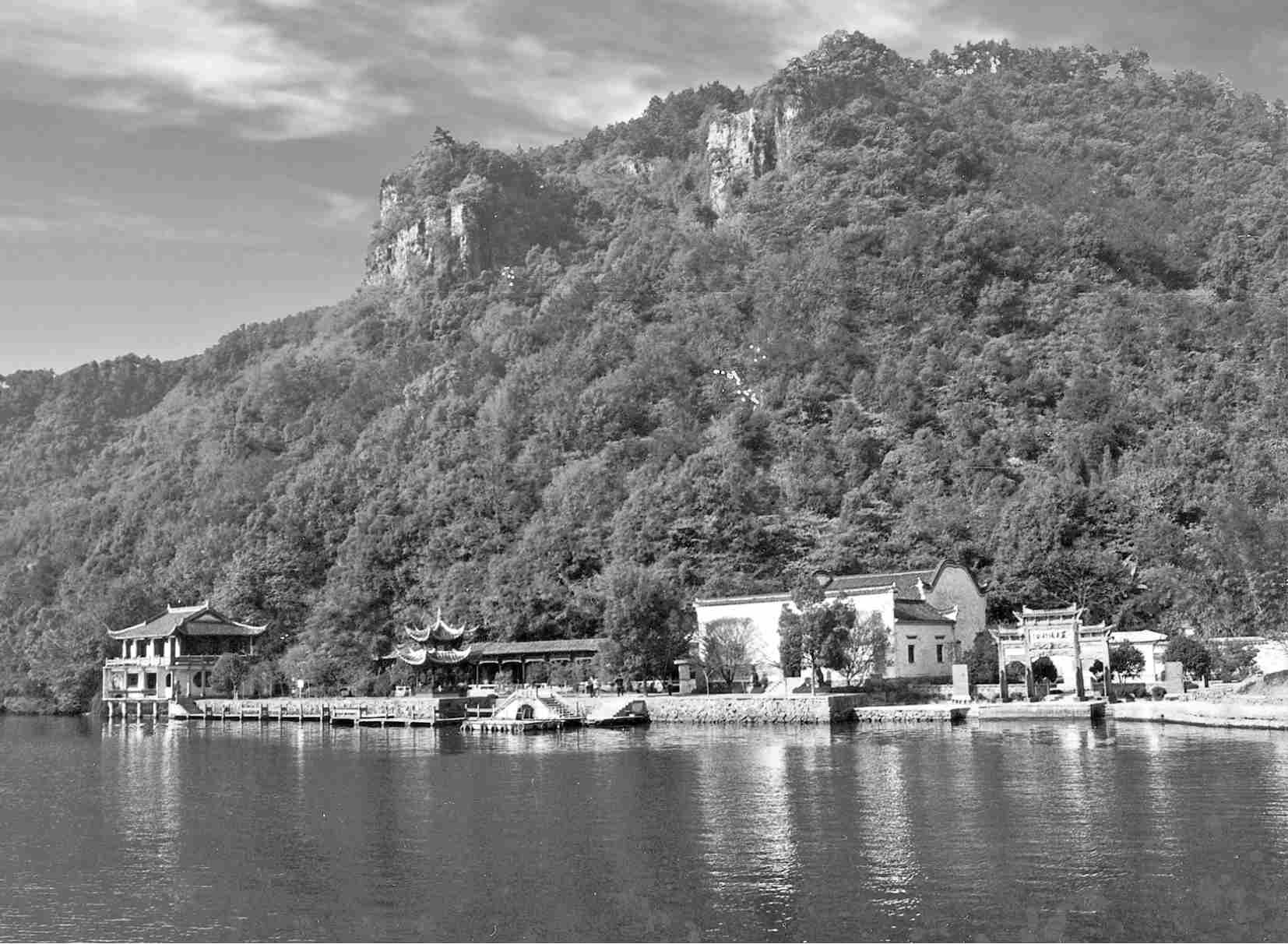江岸筑静庐山庄。碧水东去,缕缕流闪的光纹映上粉白的砖壁。入屋,临窗读过郁达夫《钓台的春昼》,把满纸才子情调的旧书合好,唯愿枕江声做一场崇古的清梦。或许得缘在幻境里和颔飘长髯的子陵钓叟诗酒笑晤,更邀三五栖逸野客,相乐于严滩的月下烟波,同其酣放。