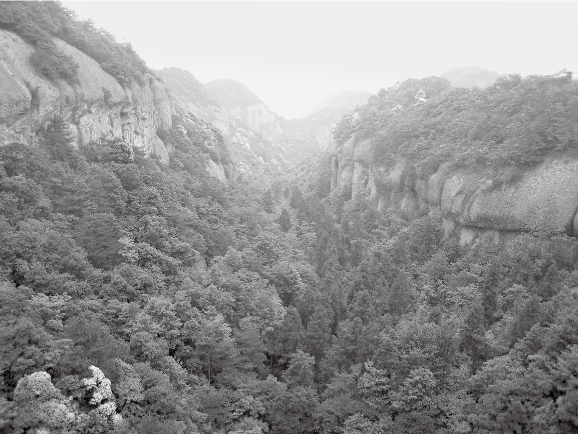 从风门口转过一道弯,跃上卧在琵琶岭下的九龙桥,昔日进香要从这里过。溪水顺着九条大涧泻下,在桥底汇流,于深谷间激起喧响。桥为明万历十五年(1587)建起,旁植的千年银杏照例极茂绿。在旧籍中发黄的历史,附着这些古物,反会勃发鲜活的生机。由这座砖构拱桥过到对岸,就到了锁涧至水帘洞的路上。北面忽然扑来一座高峰,多佛宝塔和海宁禅寺的檐脊仰翘于一山竹树深处,真有不凡的气象。通上去的索道,教人不禁吟出“云栈萦纡登剑阁”这句唐诗。题勒“花果山”三字的巨岩也一眼可以望到。花馨果馥之外,山中的佛气亦不淡。入寺,从大雄宝殿的三尊佛的面目上,我悟到的只是一个“静”字。释家宗祖的根底,俗人实难揣摩。其实佛身都是照着人像塑出来的。佛也是人,掌管精神的人。院中的两棵银杏,越千载,仍颇顽健。人之百年,犹如一瞬,真也是不堪一想的了。在释界,不焚香祭佛,只谈一些无常的东西,不算逾矩吧!守寺门的是一位圆脸微胖的年轻僧人,颇喜讲论。自他口中闻知,道人也曾入于院墙,易名三元宫。我左右瞅瞅,轻步往来的,偏无束发蓄髯的仙客;若有,眠云卧石,持素修真,必会另有一副样子。
