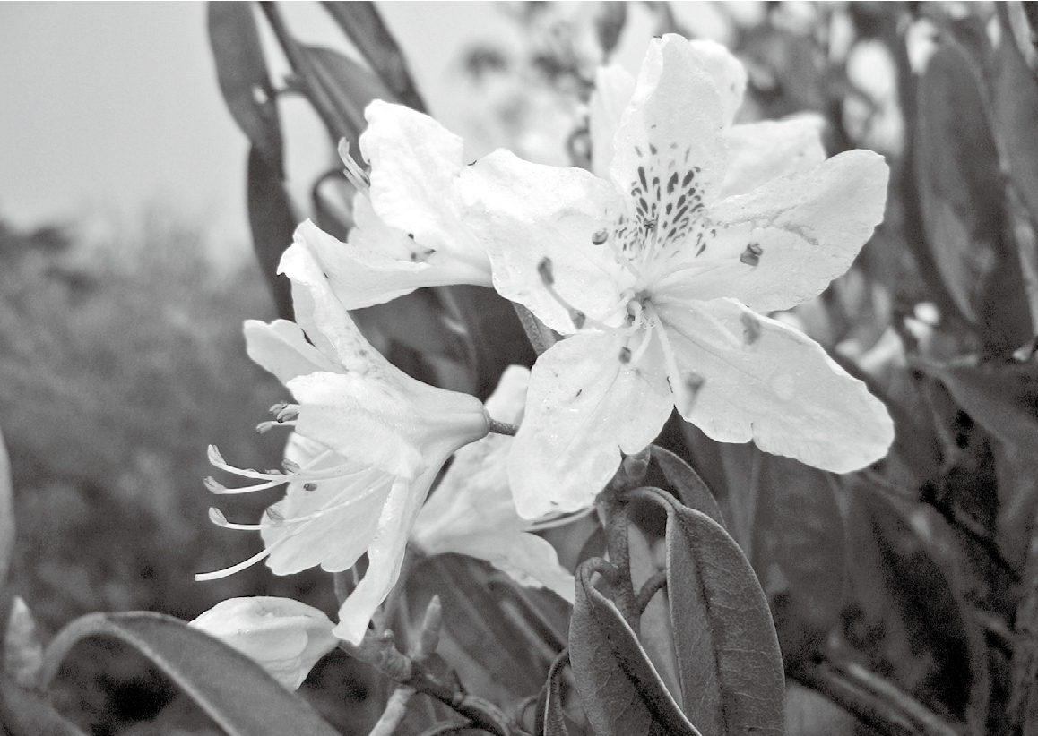 在玉皇阁上凭眺片刻,我向着玉女峰登去。路畔是紫红的鸡冠花,是艳黄的金镶玉竹。山高,鸟音渐渐稀疏,云雾却一缕缕飘得紧了。在这样的地方悠悠地走,仿若放步于宽闲之野。我颇有“天游”的感觉,可说“不亦快哉”了。至额题“迎曙”的石亭,放出目光,才看出一点花果山的雄峻。流烟、青霭、云光,隐约的远峰逸势俱足。千崖万壑覆绿,树茂叶润,浮岚间的云山只有在遥瞻中才显尽它的美。所可惜者是雾气过浓,遮去山边碧色的大海。